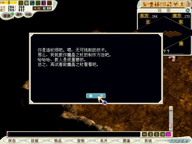 4。3楼寻找各NPC(图为做杖的坐标,其他的我找到:弓191/71;斧260/178;剑218/105;小刀252/70。其他还有259/138回力;180/137枪-by'小猪迪迪'提供),对话取得“订购单”,并得知他需要什么“材料”和“道具”。